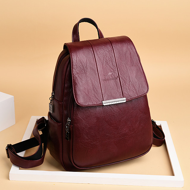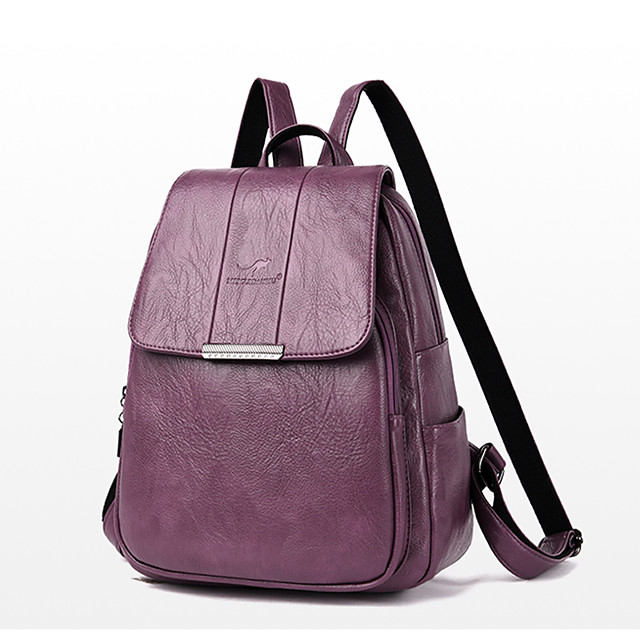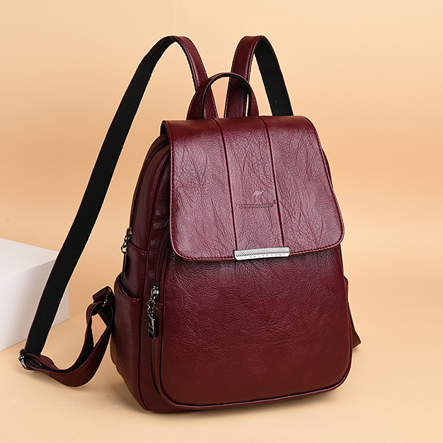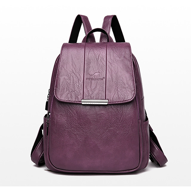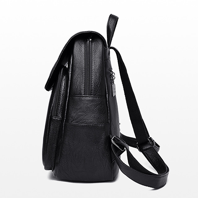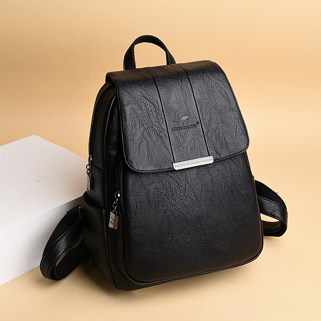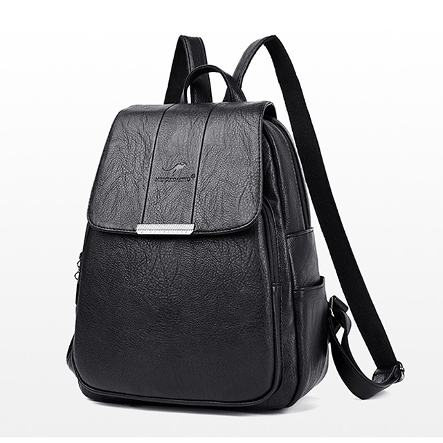 Large Capacity PU Zipper Commuter Backpack Solid Color Daily Bla High-end Customization