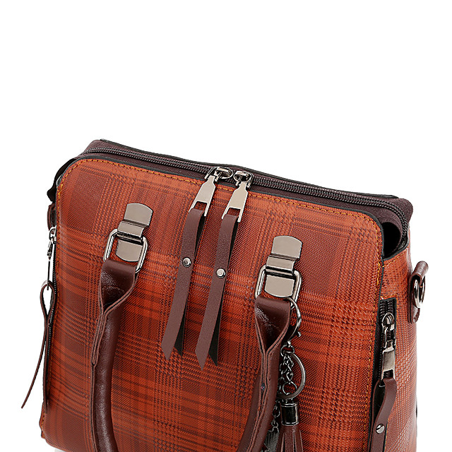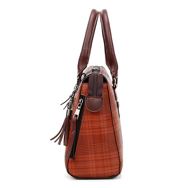 Womens Tassel PU Bag Set Striped 4 Pieces Purse Set Black High-end Customization
