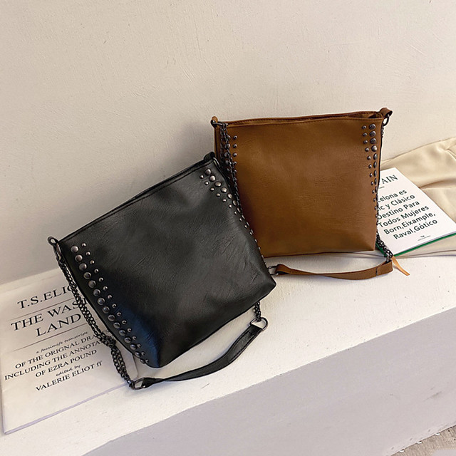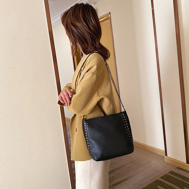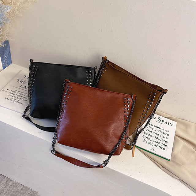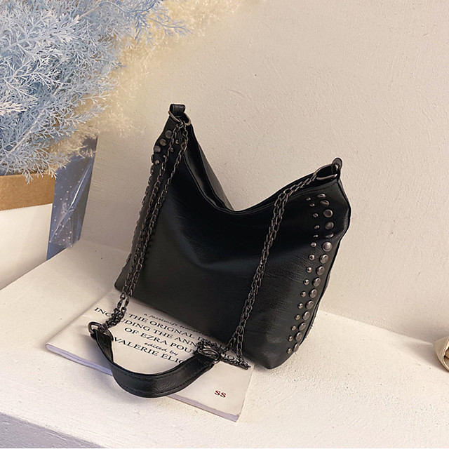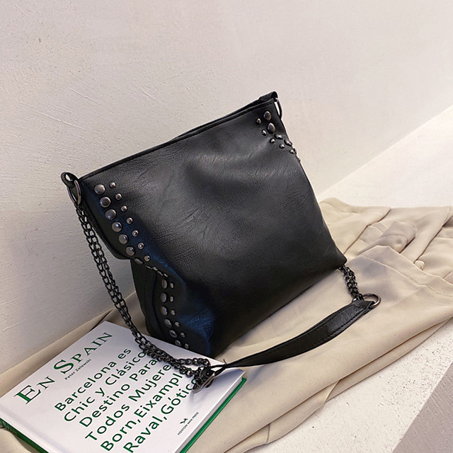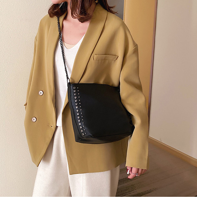 Womens Chain Polyester / PU Crossbody Bag Solid Color Blac High-end Customization
