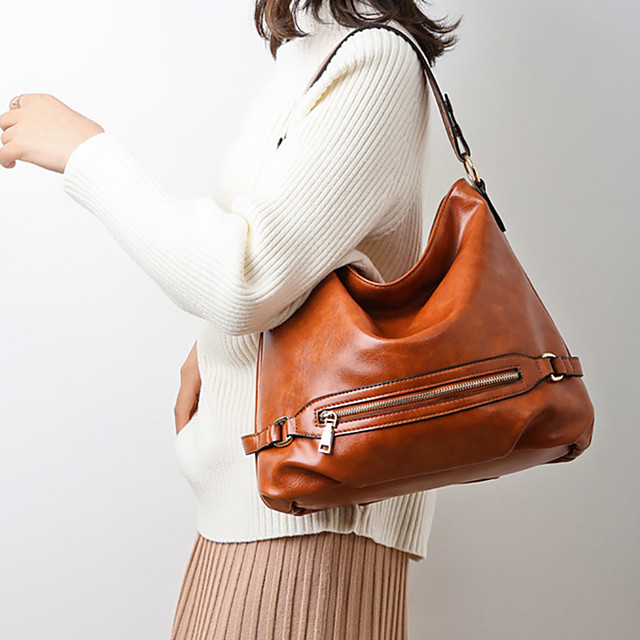 Womens Zipper Polyester / PU Top Handle Bag Solid Color Bl High-end Customization