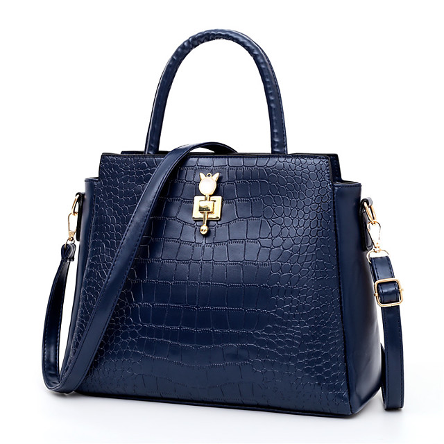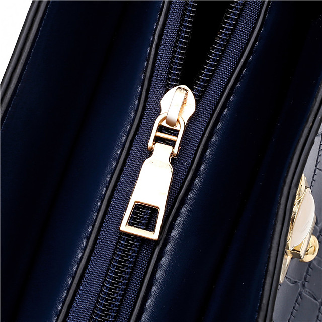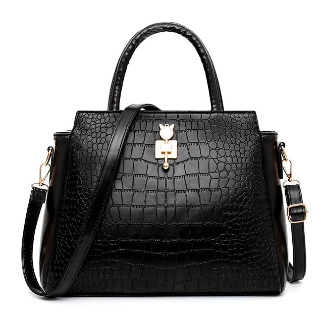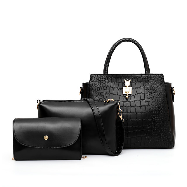 Womens Embossed PU Bag Set Crocodile 3 Pcs Purse Set Black High-end Customization
